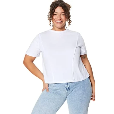 Material Composition: 100% Cotton Occasion: The White Regular fit Plus Size T-shirt is perfect for Casual occasions. Our Collection offers affordable fashion for every occasion and style – from casual & relaxed to smart & elegant. Trendyol Collection translates the latest runway trends into wearable outfits for your wardrobe. Design: This Basic Knit Plus Size T-shirt for Women has Short sleeve Crew neck Plain pattern. It is Regular fit fit. If you are in between size,please size up. Please check the product label for detailed care instructions.