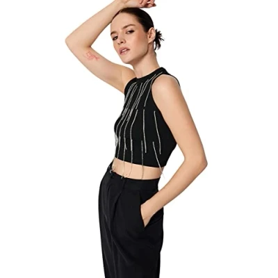 Material Composition: 100% Polyester Occasion: The Black Regular fit Blouse is perfect for Stylish / night occasions. Our Collection offers affordable fashion for every occasion and style – from casual & relaxed to smart & elegant. Trendyol Collection translates the latest runway trends into wearable outfits for your wardrobe. Design: This Basic Knitwear Blouse for Women has Sleeveless Crew neck Plain pattern. It is Regular fit fit. If you are in between size,please size up. Please check the product label for detailed care instructions.