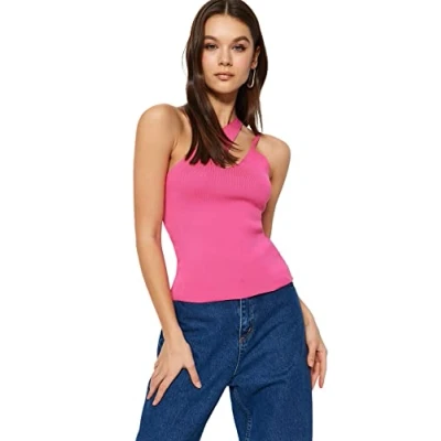 Material Composition: 100% Polyester Occasion: The Fuchsia Regular fit Blouse is perfect for Casual occasions. Our Collection offers affordable fashion for every occasion and style – from casual & relaxed to smart & elegant. Trendyol Collection translates the latest runway trends into wearable outfits for your wardrobe. Design: This Basic Knitwear Blouse for Women has Sleeveless Halterneck Plain pattern. It is Regular fit fit. If you are in between size,please size up. Please check the product label for detailed care instructions.