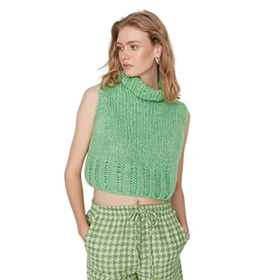 Material Composition: 80% Acrylic,20% Polyester Occasion: The Mint Regular fit Sweater is perfect for Casual occasions. Our Collection offers affordable fashion for every occasion and style – from casual & relaxed to smart & elegant. Trendyol Collection translates the latest runway trends into wearable outfits for your wardrobe. Design: This Basic Knitwear Sweater for Women has Zero Sleeve Halterneck Straight pattern. It is Regular fit fit. If you are in between size,please size up. Please check the product label for detailed care instructions.