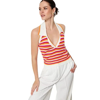 Material Composition: 100% Acrylic||Occasion: The Ecru Regular fit Blouse is perfect for Casual occasions. Our Collection offers affordable fashion for every occasion and style – from casual & relaxed to smart & elegant. Trendyol Collection translates the latest runway trends into wearable outfits for your wardrobe.||Design: This Basic Knitwear Blouse for Women has Sleeveless Polo neck Colorblock pattern. It is Regular fit fit.||If you are in between size,please size up.||Please check the pr
