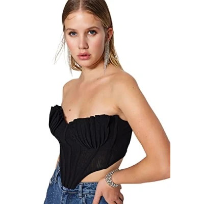 Trendyol Women Regular fit Crop Strapless Woven Bustier,Black,36