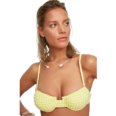 Material Composition: 60% Polyester, 36% Polyamide, 4% Elastane Occasion: The Yellow Regular fit Bikini Top is perfect for Beachwear occasions. Our Collection offers affordable fashion for every occasion and style – from casual & relaxed to smart & elegant. Trendyol Collection translates the latest runway trends into wearable outfits for your wardrobe. Design: This balconette woven bikini top for women has maximizer cup and plain pattern. It is Single pack If you are in between size,please size up. Hand wash at a maximum temperature of 30°C. Do not use bleach. Do not tumble dry. Do not iron. Do not dry clean.