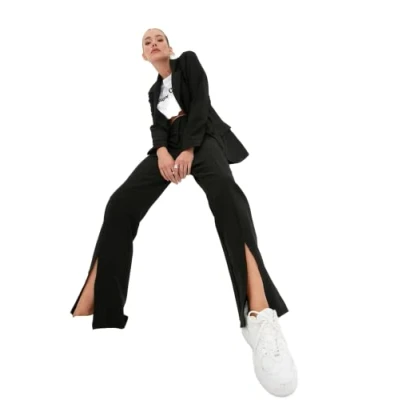 Material Composition: 88% Polyester, 12% Elastane Occasion: The Schwarz Flare Pants is perfect for Casual occasions. Our Collection offers affordable fashion for every occasion and style – from casual & relaxed to smart & elegant. Trendyol Collection translates the latest runway trends into wearable outfits for your wardrobe. Design: This Regular Waist Woven Trousers for Women has Flare fit and Wide leg with a Straight pattern. If you are in between size,please size up. Wash at a maximum temperature of 30°C. Do not use bleach. Do not tumble dry. Iron at low temperature. Do not dry clean.