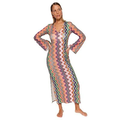 Material Composition: 99% Polyester, 1% Elastane||Occasion: The Very colorful Regular fit Dress is perfect for Beachwear occasions. Our Collection offers affordable fashion for every occasion and style – from casual & relaxed to smart & elegant. Trendyol Collection translates the latest runway trends into wearable outfits for your wardrobe.||Design: It is a V Neck Dress for Women . This Knit Dress has a Basic design with Geometric pattern pattern.||If you are in between size,please size up.||