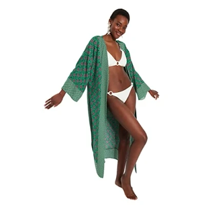 Trendyol Women Beachwear Relaxed Basic V Neck Woven Kimonos & Kaftans