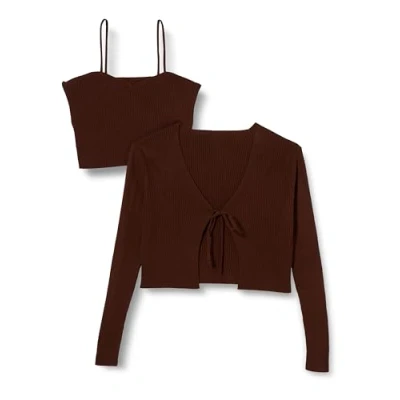 TRENDYOL Women's Damen Gerade 2er Pack Lange Ärmel Schlank Strickjacke Cardigan Sweater, Brown, L