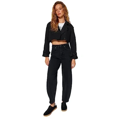Trendyol Women's Damen Gerade Hohe Taille Jeans, Black, 6