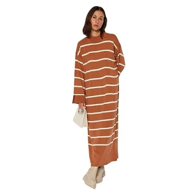 Material composition: 100% acrylic Occasions: The relaxed fit modest dress is perfect for casual occasions. Ours offers Design: this is a turtleneck modest dress for women. This jersey modest dress has a basic design with striped pattern. If you are between sizes, please take one size larger.
