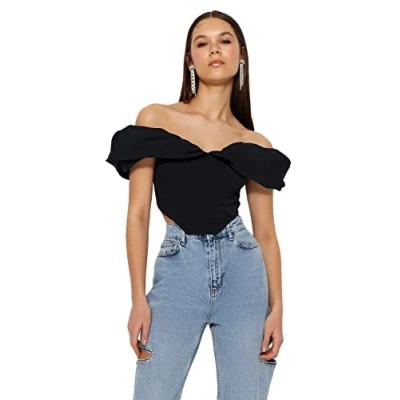 Trendyol Women's Fitted Carmen Collar Woven Bustier Bra, Black, UK 14