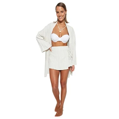 Material Composition: 44 Percent Polyester, 26 Percent Cotton, 15 Percent Linen, 14 Percent Viscose, 1 Percent Elastane Occasion: The Ecru Shorts is perfect for Beachwear occasions. Our Collection offers affordable fashion for every occasion and style – from casual and relaxed to smart and elegant. Trendyol Collection translates the latest runway trends into wearable outfits for your wardrobe Design: This High Waist Woven Shorts for Women has fit and Wide leg with a Plain pattern If you are in between size,please size up