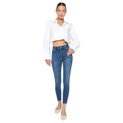 TRENDYOL Women's Navy Blue High Waist Skinny Jeans Twoaw24je00066, 12