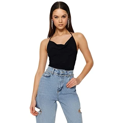 Material Composition: 97% Polyester, 3% Elastane Occasion: The Black Fitted Bodysuit is perfect for Party occasions. Our Collection offers affordable fashion for every occasion and style – from casual & relaxed to smart & elegant. Trendyol Collection translates the latest runway trends into wearable outfits for your wardrobe. Design: This Knit Bodysuit for Female has top and bottom. It matches trends with Plain pattern. If you are in between size,please size up. Wash at a maximum temperature of 30°C. Do not use bleach. Do not tumble dry. Iron at low temperature. Do not dry clean.