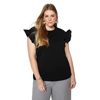 Material Composition: 100% Cotton Occasion: The Black Regular fit Plus Size T-shirt is perfect for Casual occasions. Our Collection offers affordable fashion for every occasion and style – from casual & relaxed to smart & elegant. Trendyol Collection translates the latest runway trends into wearable outfits for your wardrobe. Design: This Basic Knit Plus Size T-shirt for Women has Short sleeve Crew neck Plain pattern. It is Regular fit fit. If you are in between size,please size up. Wash at a maximum temperature of 30°C. Do not use bleach. Do not tumble dry. Iron at medium temperature. Do not dry clean.