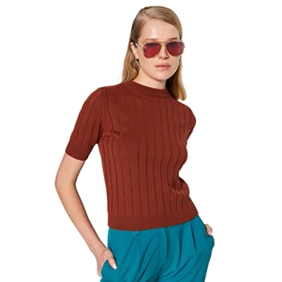 Material Composition: 100% Acrylic Occasion: The Brown Regular fit Sweater is perfect for Casual occasions. Our Collection offers affordable fashion for every occasion and style – from casual & relaxed to smart & elegant. Trendyol Collection translates the latest runway trends into wearable outfits for your wardrobe. Design: This Basic Knitwear Sweater for Women has Short sleeve Crew neck Plain pattern. It is Regular fit fit. If you are in between size,please size up. Hand wash at a maximum temperature of 30°C. Do not use bleach. Do not tumble dry. Iron at low temperature. Do not dry clean.