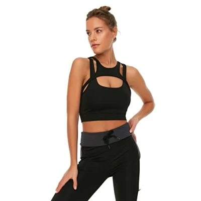 Material Composition: 95% Polyester, 5% Elastane||Occasion: The Black Crop Sports Bra is perfect for Sportswear occasions. Our Sportswear Collection offers affordable fashion for every occasion and style – from casual & relaxed to smart & elegant. Trendyol Collection translates the latest runway trends into wearable outfits for your wardrobe.||Design: This balconette woven bikini top for women has maximizer cup and plain pattern. It is Single pack||If you are in between size,please size up.||