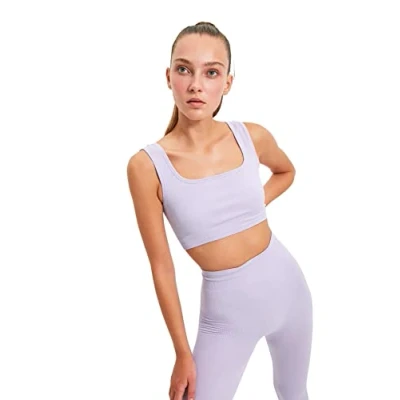 Trendyol Women's Sportswear Crop Square Collar Knit Sports Bra, Lila, Medium
