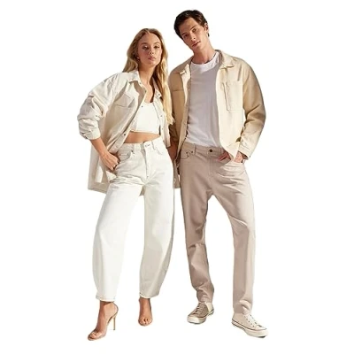TRENDYOL Women's White High Waist Barrel Jeans Twoss23je00295, 16