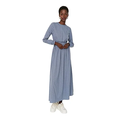 Trendyol Women's Woman Design Regular Standard Crew Neck Woven Dress, Navy Blue, 36