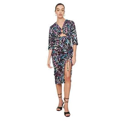 Material Composition: 100% Polyester Occasion: The Black Regular fit Dress is perfect for Stylish / night occasions. Our Collection offers affordable fashion for every occasion and style – from casual & relaxed to smart & elegant. Trendyol Collection translates the latest runway trends into wearable outfits for your wardrobe. Design: It is a V Neck Midi Dress for Women . This Woven Dress has a Bodycon design with Animal print pattern. If you are in between size,please size up. Please check the product label for detailed care instructions.