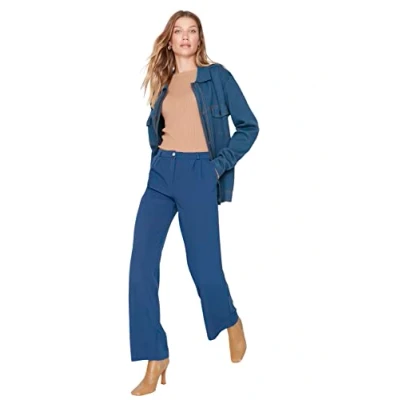 Trendyol Women's Woman Wide Leg Pants, Teal, 38 UK