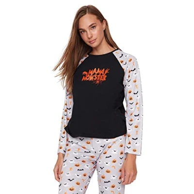 Material Composition: 100% Cotton Occasion: The Regular Pajama Set is perfect for Loungewear occasions. Our Homewear collection offers affordable fashion for every occasion and style. Trendyol translates the latest runway trends into wearable outfits. Design: This Regular Knit Pajama Set for Women / Girl has Crew neck, Standard top and Straight leg bottom. It matches trends with With Slogan pattern. If you are in between size, please size up. Trendyol Collection offers a wide variety of apparel, footwear and accessories for you to embrace your unique style. Dress the way you are.