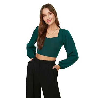 Material Composition: 96% Polyester, 4% Elastane Occasion: The Green Slim fit Blouse is perfect for Casual occasions. Our Young Collection offers young, colorful, stylish and comfy pieces for every occasion and style with trendy designs and loving details. Trendyol Collection translates the latest runway trends into wearable outfits for your wardrobe. Design: This Bodycon Woven Blouse for Female has Long sleeve Sweetheart Plain pattern. It is Slim fit fit. If you are in between size,please size up. Wash at a maximum temperature of 30°C. Do not use bleach. Do not tumble dry. Iron at low temperature. Do not dry clean.