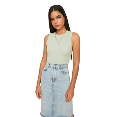 Material Composition: 100% Polyester Occasion: The mint Slim fit Blouse is perfect for Casual/Casual occasions. Our Collection offers affordable fashion for every occasion and style – from casual & relaxed to smart & elegant. Trendyol Collection translates the latest runway trends into wearable outfits for your wardrobe. Design: This Bodycon Knitwear Blouse for Women has Sleeveless Crew neck Plain pattern. It is Slim fit fit. If you are in between size,please size up. Hand wash at a maximum temperature of 30°C. Do not use bleach. Do not tumble dry. Iron at low temperature. Do not dry clean.