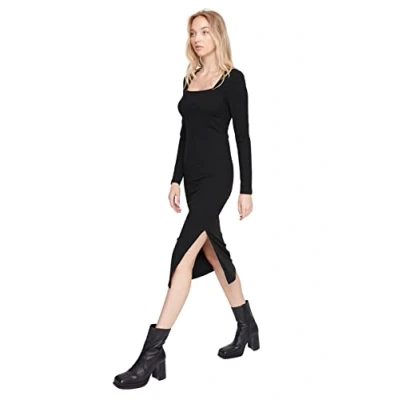 Material Composition: 61% Polyester, 35% Viscose, 4% Elastane Occasion: The Schwarz Slim fit Dresses is perfect for Casual occasions. Our Basics Collection offers affordable fashion for every occasion and style – from casual & relaxed to smart & elegant. Trendyol Collection translates the latest runway trends into wearable outfits for your wardrobe. Design: It is a Square collar Midi Dress for Women. This Knitted Dress has a bodycone design with Plain pattern. Size Conversion: XXS(EU 32 - US 0), XS(EU 34 - US 2), S(EU 36 - US 4), M(EU 38 - US 6), L(EU 40 - US 8), XL(EU 42 - US 10), 2XL(EU 44 - US 12), 3XL(EU 46 - US 14), 4XL(EU 48 - US 16), 5XL(EU 50 - US 18), 6XL(EU 52 - US 20) Wash at a maximum temperature of 30°C. Do not use bleach. Do not tumble dry. Iron at low temperature. Do not dry clean.