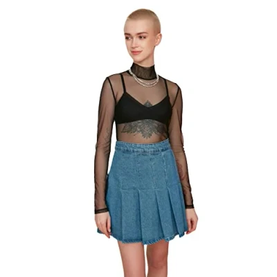 Material Composition: 96% Polyester,4% Elastane Occasion: The Black Slim fit Blouse is perfect for Day / Night occasions. Our Young Collection offers young, colorful, stylish and comfy pieces for every occasion and style with trendy designs and loving details. Trendyol Collection translates the latest runway trends into wearable outfits for your wardrobe. Design: This Basic Knitted Blouse for Women has Long Sleeve Standing collar Straight pattern. It is Slim fit fit. If you are in between size,please size up. Wash at a maximum temperature of 30°C. Do not use bleach. Do not tumble dry. Iron at low temperature. Do not dry clean.