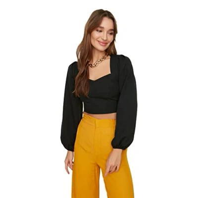 Material Composition: 96% Polyester,4% Elastane Occasion: The Schwarz Slim fit Blouses is perfect for Casual occasions. Our Young Collection offers young, colorful, stylish and comfy pieces for every occasion and style with trendy designs and loving details. Trendyol Collection translates the latest runway trends into wearable outfits for your wardrobe. Design: This Basic Woven Blouse for Women has Long Sleeve Sweetheart Straight pattern. It is Slim fit fit. If you are in between size,please size up. Wash at a maximum temperature of 30°C. Do not use bleach. Do not tumble dry. Iron at low temperature. Please check the product label for detailed care instructions.