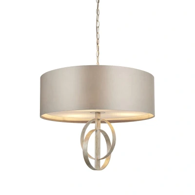 Trento 3 Light Ceiling Pendant Antique Silver Leaf & Mink Satin Fabric
