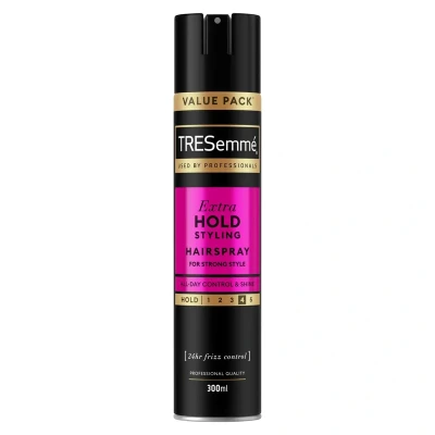TRESemmé Hairspray Extra Hold 300ml offers long-lasting style with strong hold and nourishing ingredients like PEG-12 Dimethicone for smooth, shiny hair. Easy to use and ideal for volume, it’s perfect for daily wear or special occasions.