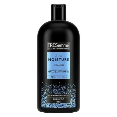 Transform your hair into salon-soft and silky hair with this TRESemme moisture rich shampoo, perfect for daily use. This shampoo is enriched with vitamin E, which helps restore softness and lock in moisture without weighing down the hair.. 1 x TRESemme Moisture Rich Shampoo 900ml. With vitamin E. Ideal for dry and damaged hair