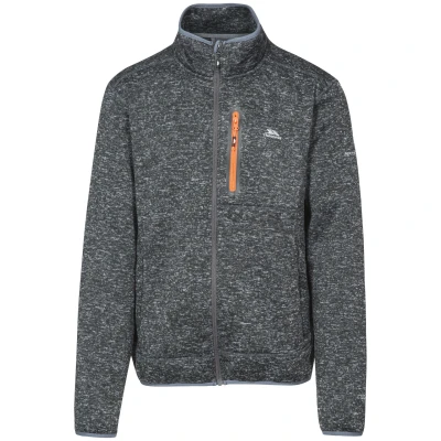Knitted marl fleece. Brushed back. Chest pocket with printed surround detail. Coverstitch detail. 3 zip pockets. Stretch binding at cuffs and hem. 100% polyester.