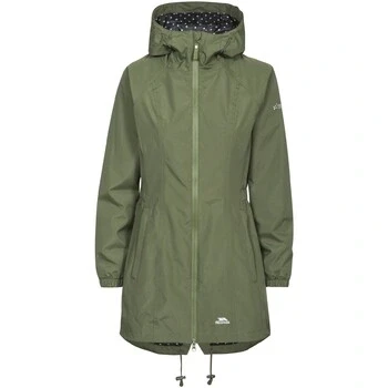 Shell. Printed lining. 2 zip pockets with tricot pocket bags. Elastic sides and cuffs. Matt waterproof C/F zip with 2 way zipper. Grown on hood. Longer parka length. Back hem ties. Waterproof 3000mm, taped seams, windproof. 100% Polyester pongee, PVC coating, full dull finish. Trespass Womens Chest Sizing (approx): XS/8 - 32in/81cm, S/10 - 34in/86cm, M/12 - 36in/91.4cm, L/14 - 38in/96.5cm, XL/16 - 40in/101.5cm, XXL/18 - 42in/106.5cm.