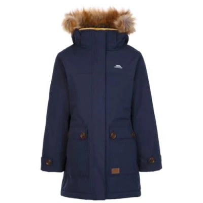 Trespass Girls Waterproof Jacket Padded Hood with Fake Fur Detachable Trim Rhoda