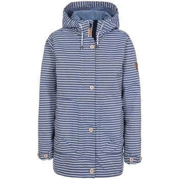 Shell: 60% Polyester/40% Cotton, TPU membrane, Lining: 50% Cotton/50% Polyester. Yarn dyed stripe. Chambray lining. Grown on hood with cord adjusters. 2 zip pockets. Adjustable button cuffs. Storm flap with buttons. Bust darts. Leather trims. Back hem vent. Longer length. Waterproof 3000mm, breathable 3000mvp, windproof, taped seams. Trespass Womens Chest Sizing (approx): XS/8 - 32in/81cm, S/10 - 34in/86cm, M/12 - 36in/91.4cm, L/14 - 38in/96.5cm, XL/16 - 40in/101.5cm, XXL/18 - 42in/106.5cm.