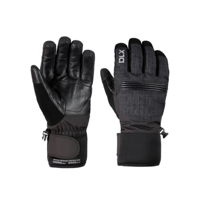 100% Polyester. Fabric: DLX, Woven. Cuff: Adjustable Wrist Strap. Fabric Technology: Breathable, Waterproof. Glove Retainer, Light Padding. Design: Contrast. Waterproof Rating: 10000mm. 5000g/m²/24hrs. Fastening: Clasp. Leather Palm. Shell: TPU Membrane.
