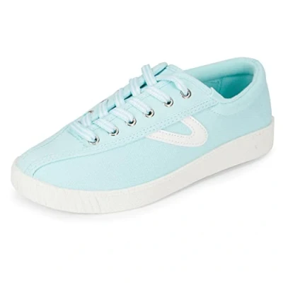 TRETORN Nyliteplus Canvas Trainers, Women's lace up, Casual Tennis Shoes, Classic Vintage Style, Mint White Striped Grosgrain Ribbon, 7.5 UK