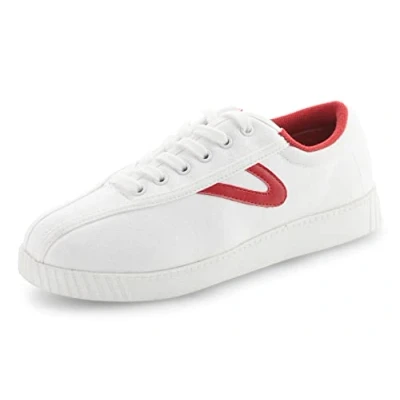TRETORN Women's Nyliteplus Canvas Sneakers Lace up Casual Tennis Shoes Classic Vintage Style Nylite Plus, White/Red, 6.5 UK