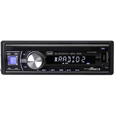 Control of treble, bass, fade x4 speakers AUX input - no CD.alphAnumeric LCD display. FM stereo tuner. Fixed front panel. 18 preselection in FM. Automatic/manual tuning Fixed front plate