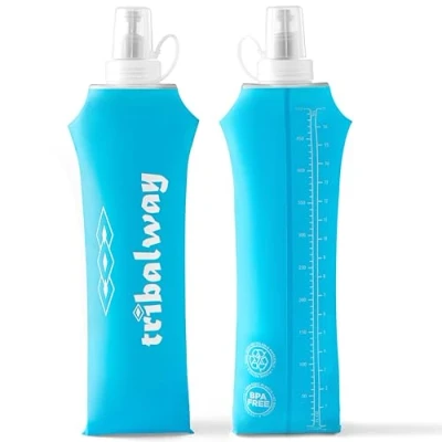 Tribalway 2 x Soft Flask 500ml Running Water Bottles Collapsible for Hydration Vest BPA Free Bottle Running, Hiking, Cycling Leakproof & Lightweight (Blue)