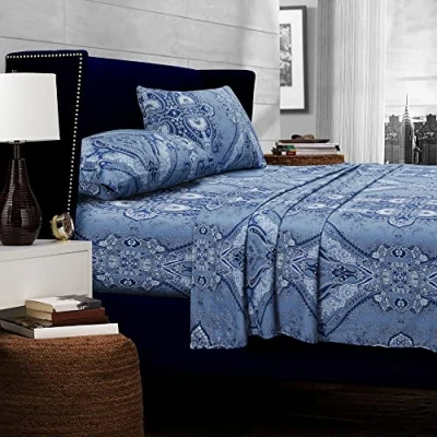 Tribeca Living California King Bed Sheet Set, 300 Thread Count Soft Cotton Sateen, Floral Print with Extra Deep Pockets, 4 Piece Bedding Atlantis Multicolor