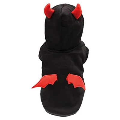 Sweatshirt for dogs and cats with wings and devil horns. Soft and warm. Available in different sizes dog and cat sweatshirt Soft padded fabric bat wings and horns applied to the back and hood Adjustable Velcro closure