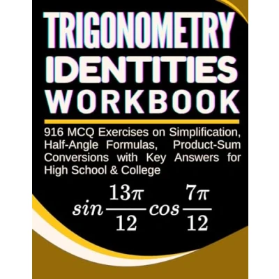 Trigonometry Identities Workbook 916 MCQ Exercises on Simplification, Half Angle Formulas, Product Sum Conversions with Key Answers for High School & College
