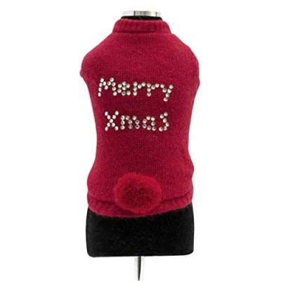 Trilly Tutti Brilli Loup Wool Sweater with Crystal Snowflake Brooch, Red, X Large
