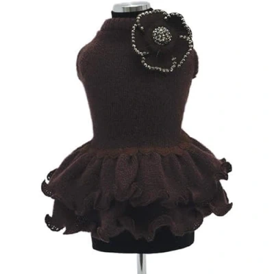 Trilly Tutti Brilli Lalie Wool Dress with Flower Brooch and Swarovski Rivet,...