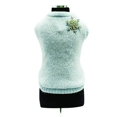 Trilly Tutti Brilli Loup Wool Sweater with Crystal Snowflake Brooch, X Small, Brown