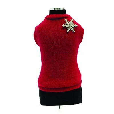 Trilly Tutti Brilli Loup Wool Sweater with Crystal Snowflake Brooch, X Small, Brown